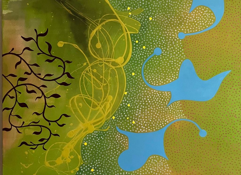 For Audrey abstract painting has been a way to explain her unique understanding of the nature of being, the dance between emptiness and energy that makes up the world around us and our own relationship to the forces of nature and self. Influenced both by modern abstract painting and its understanding of how we express our emotions and relationship to our modern world, as well as deeply informed by Tantra’s emphasis on sacred geometry as a path to understanding the divine nature of being. Merging these two elements has been a lifelong journey that is still a work in progress and always changing.